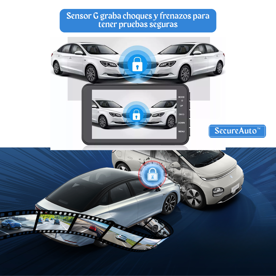 Protege tu vehículo las 24 horas con SecureAuto™ , la cámara dual Full HD que graba cada detalle mientras conduces o estacionas. Descubre la tranquilidad de contar con seguridad avanzada al alcance de tu mano.